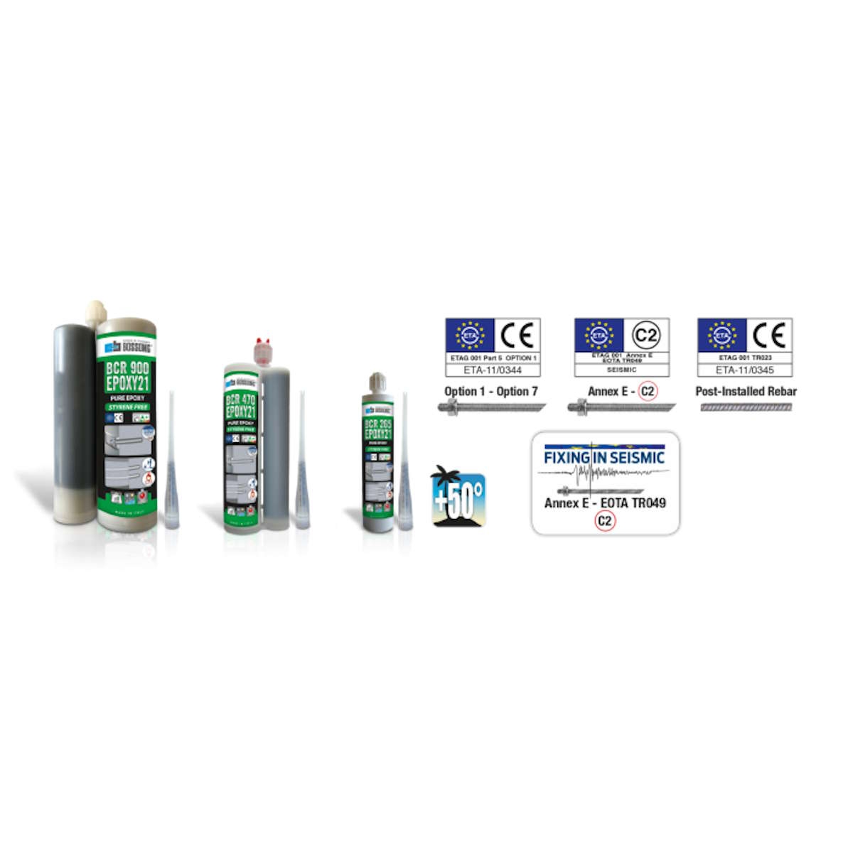 EPOXY 21 è la resina epossidica Bossong bi-componente ad alto valore di aderenza per fissaggi pesanti per applicazioni su calcestruzzo, muratura piena e legno. Doppia marcatura CE qualificata anche per azioni sismiche categoria C2.
