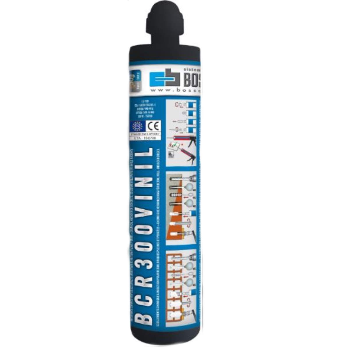 Resina epossiacrilato Bossong senza stirene bi-componente per carichi pesanti per fissaggi in calcestruzzo, muratura piena, laterizi forati e legno.