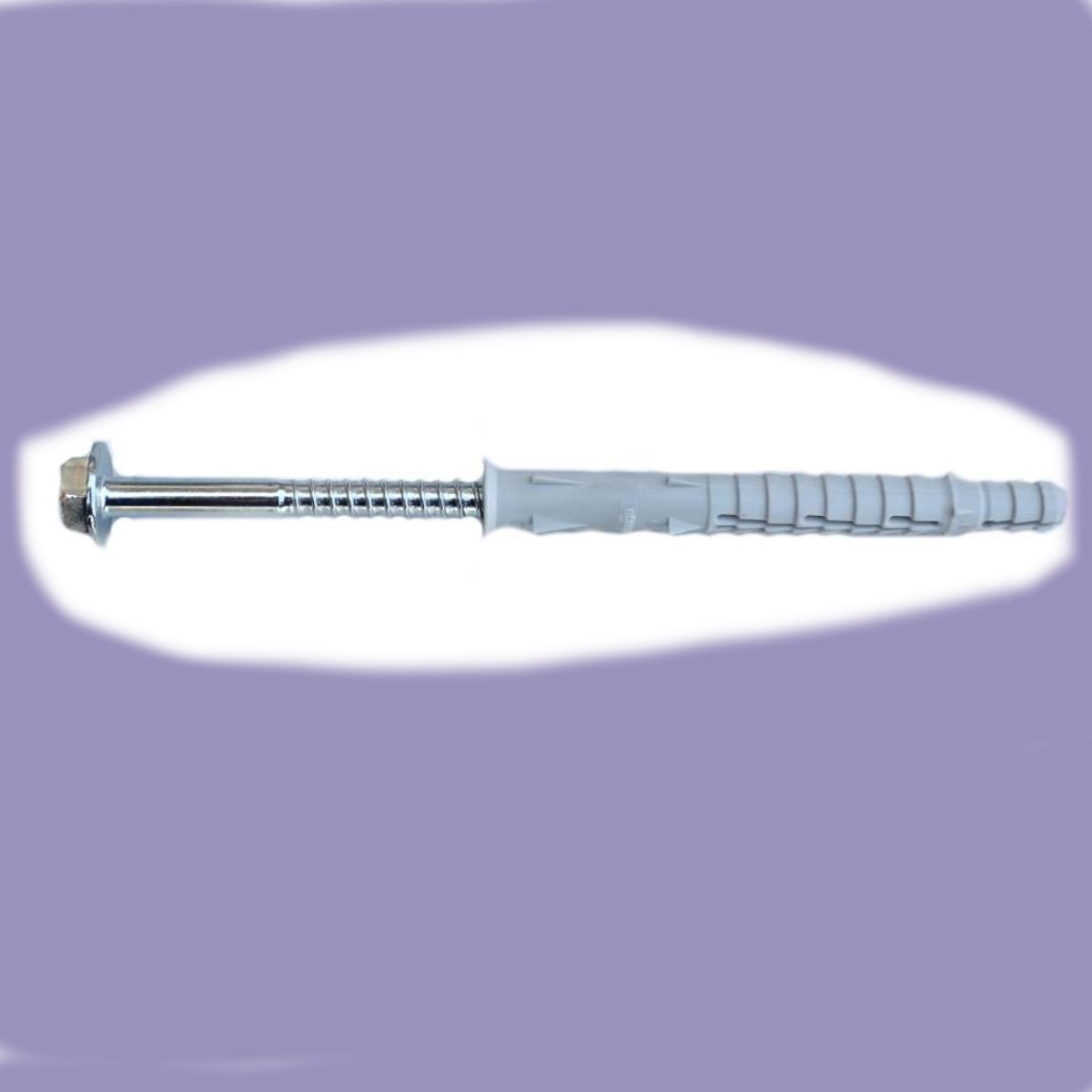 Ancorante UNIVERSALE in nylon prolungato con bordo svasato, con speciali alette antirotazione, BREVETTATO, completo di speciale vite a legno Testa Esagonale falsa Rondella impronta a 6 lobi, in acciaio zincato (esente da CrVI), certificato ETA-CE.